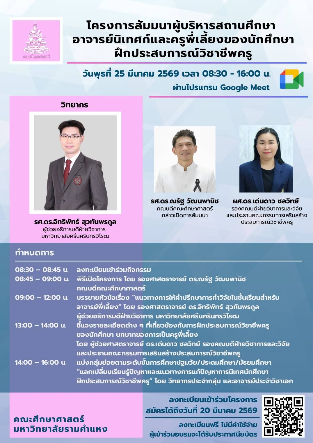 โครงการสัมมนาผู้บริหารสถานศึกษา อาจารย์นิเทศก์ และครูพี่เลี้ยงของนักศึกษาฝึกประสบการณ์วิชาชีพครู วันพุธที่ 25 มี.ค. 69ประชาสัมพันธ์2 มีนาคม 2026