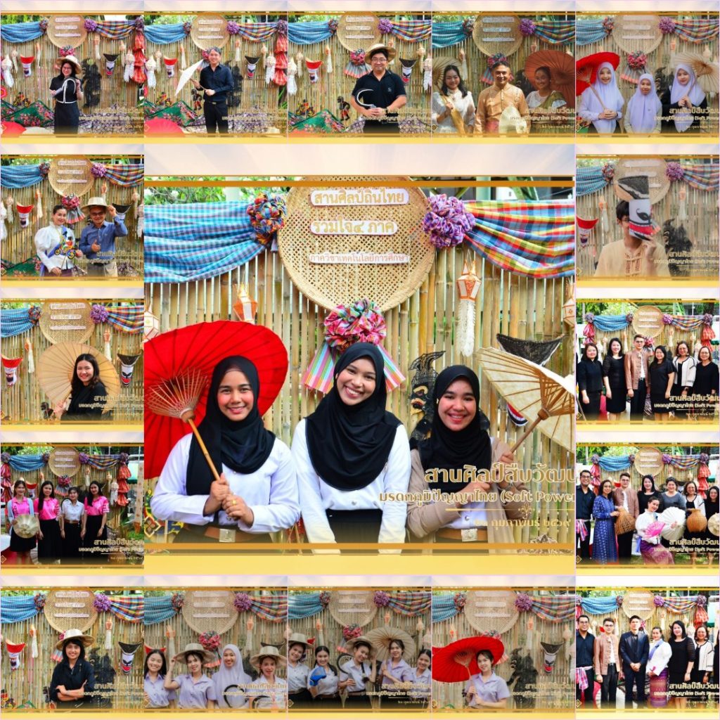 คณะศึกษาศาสตร์ จัดโครงการ “สานศิลป์สืบวัฒนธรรมมรดกภูมิปัญญาไทย (Soft Power)” เพื่อส่งเสริมการเรียนรู้ อนุรักษ์ และสืบสานศิลปวัฒนธรรมไทย ตลอดจนสร้างความตระหนักถึงคุณค่าแห่งภูมิปัญญาท้องถิ่นที่เป็นเอกลักษณ์ของชาติ ให้กับนักศึกษาและผู้เข้าร่วมกิจกรรม โดยได้รับเกียรติจาก รศ.ดร.ณรัฐ วัฒนพานิช คณบดีคณะศึกษาศาสตร์ เป็นประธานในพิธีเปิดโครงการ และ ผศ.ดร.พรดารา เขตต์ทองคำ รองคณบดีฝ่ายสวัสดิการ เป็นผู้กล่าวรายงานวัตถุประสงค์ของการจัดงาน