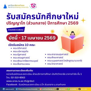 คณะศึกษาศาสตร์ มหาวิทยาลัยรามคำแหง เปิดรับสมัครนักศึกษาใหม่ระดับปริญญาโท สาขาวิช…