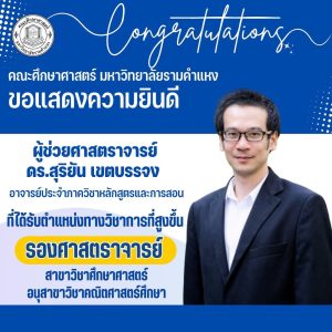 คณะศึกษาศาสตร์ ขอแสดงความยินดีกับ ผศ.ดร.สุริยัน เขตบรรจง ภาควิชาหลักสูตรและการสอ…