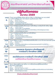 ปฏิทินกิจกรรม คณะศึกษาศาสตร์ ประจำเดือน มีนาคม 2569